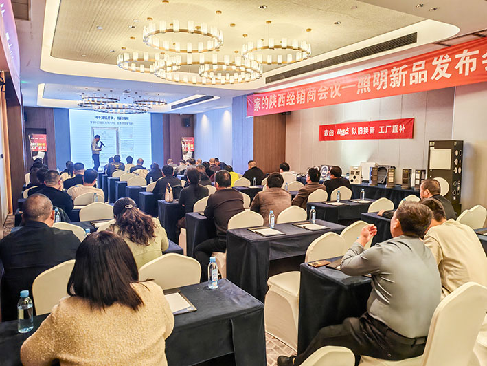 会议现场还展出了家的照明新品,比如反出光射灯、LED光源模组、平板灯、筒灯等。其中,反出光射灯拥有技术专利,以“零眩光,健康护眼”为突出优势,引人注目。家的为经销商提供优质的照明产品,拓展销售渠道。这也正反映了本次会议演讲的主题“新发展 新机遇”。